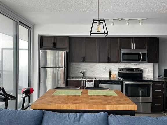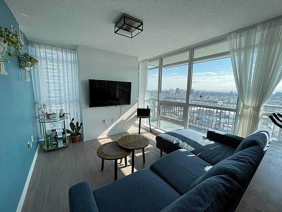 High Demand Location With "South Facing View "On Treviso 2 Condos. Open Concept Contemporary Designed Large 1+Den W/ 1 Prkg & 1 Lckr, W/ Quartz Counter $ Marble Backslash. Indoor Pool, Sauna, Party Room, Visitor Parking, 24 Hr Concierge. Retail Shops On 1st Floor. Ttc At Doorstep. Walking Distance From The Lawrence Subway Line & Yorkdale Mall. Absolutely Spectacular View From 15th Floor Of The Toronto Skyline.