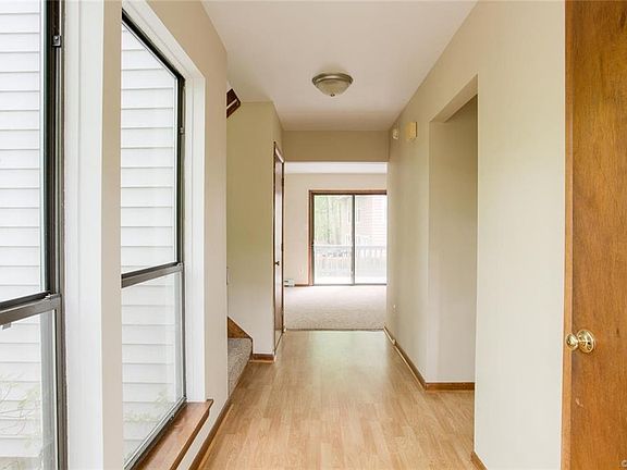 Charming Two Story Contemporary- Very Open & Bright! Enter into your open foyer(side entrance) with great closet space-you will enjoy the family room with NEW Carpet & Vaulted Ceiling - nice cozy wood stove/Fireplace -Large newly stained deck just off the family room - HUGE eat in kitchen featuring stainless sink - Black appliance package - newer floor - and laminate counters - Great size bedrooms with NEW carpet - newer windows - ceiling fans - and easy to maintain vinyl siding! Great pull down attic for additional storage -- fresh paint -- ready for you to move right in! Close to shopping - eating- and transportation!
