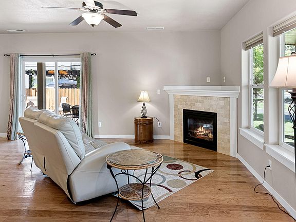 Main floor includes Open Floor Plan; Great Room with 9' ceilings, gas fireplace. The Kitchen includes granite counters, tile backsplash, breakfast bar & eating area, stainless appliances, gas cooktop and pantry. There is a half bath on the main level. The second level includes a spacious primary bedroom with a partial mountain view. Large bath with double sinks, tub/shower combo. Nice seperation between the primary and 2 additional bedrooms. Alley access to double garage.