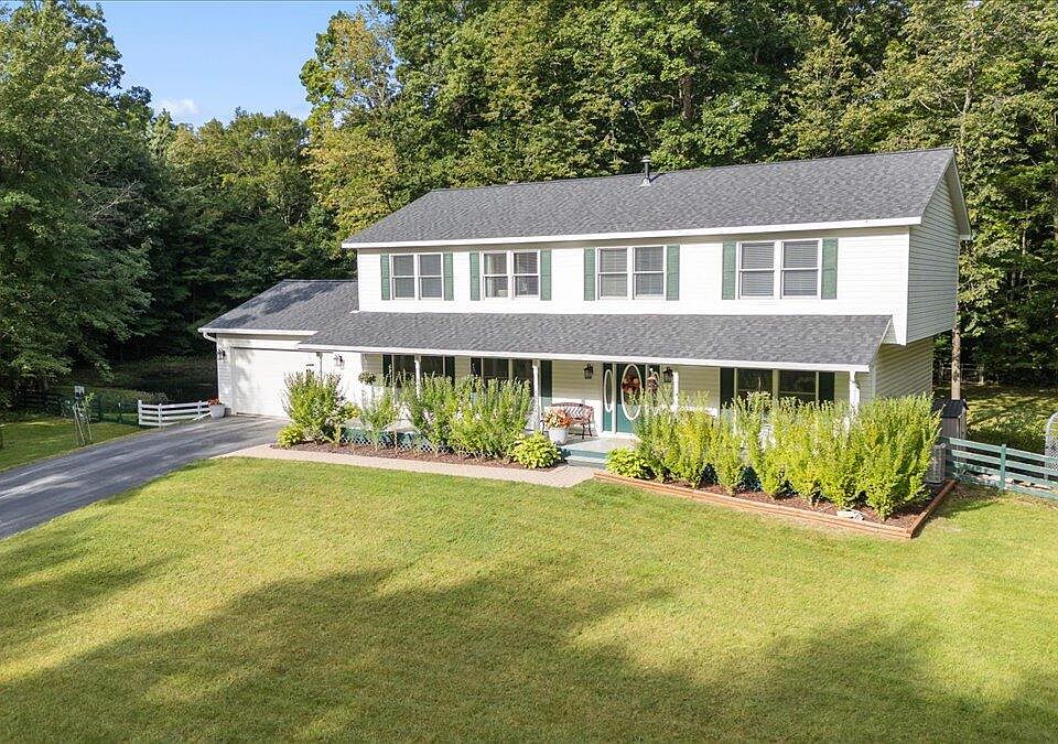 Welcome home to your private wooded oasis just minutes away from downtown Brighton and shopping in Hartland. Set on five wooded acres down a private road, the property features a quarter acre pond stocked with bass and catfish, fruit trees, a strolling garden with flagstone paths, raised beds, a large storage shed, and poultry coop all within the fenced back yard. Fresh updates abound with new appliances, new roof (2023), new furnace and AC (2021), and new carpet. The walkout basement has been recently finished to include a beautiful full bath, a fifth bedroom, and a comfortable living space with a new wood stove. Upstairs, the generous ensuite allows for a home office or wellness area overlooking the pond and woods, and the large walk-in closet is filled with natural light. On the main floor, welcome guests into the sitting room, enjoy a meal in the formal dining room or eat-in kitchen, and unwind for the evening on the large composite deck or by the fireplace in the family room.
