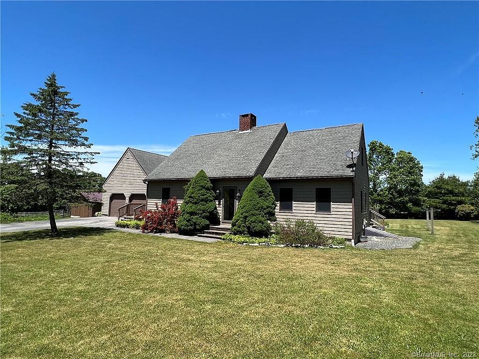 Charming Cape Cod style home on almost 4 acres with horse barn & paddock and 3 additional outbuildings. 3 bedrooms - one located on the first floor, 2 on the second floor. 2 full baths - one on first floor, one on second floor. Fireplace in living room. Woodstove in family room. Interior of home is freshly painted and new carpet in 2 of the bedrooms. Hardwood floors in 3rd bedroom and the main living area. Large back deck. Cedar impression siding. 2 car attached garage with walk up, easy access storage above.