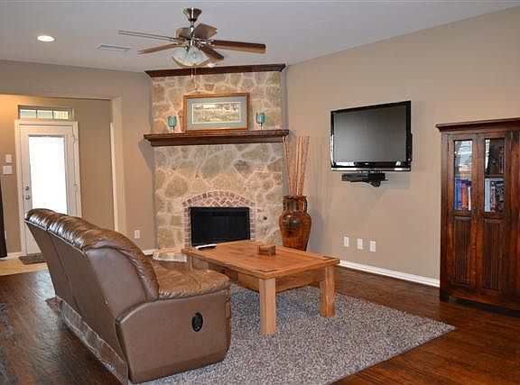 Stunning Highland home in Lakes of Prosper w-upgrades galore! Upgraded lighting package, handscraped wood flrs, 2-in blinds & more! Study w-French doors, chef's kitchen w-granite, gas cooktop, built-in microwave, island & brkfst bar. Spacious mstr suite! Second bedroom downstairs. Upstairs features game rm, media rm, exercise rm (could be used for anything), 3 bedrooms & 2 full baths. Community pool & park. Close to schools, shopping & highways.