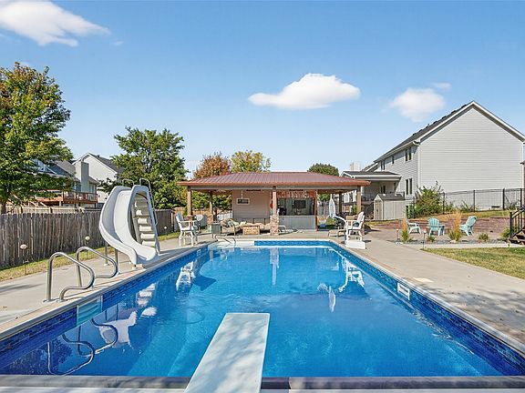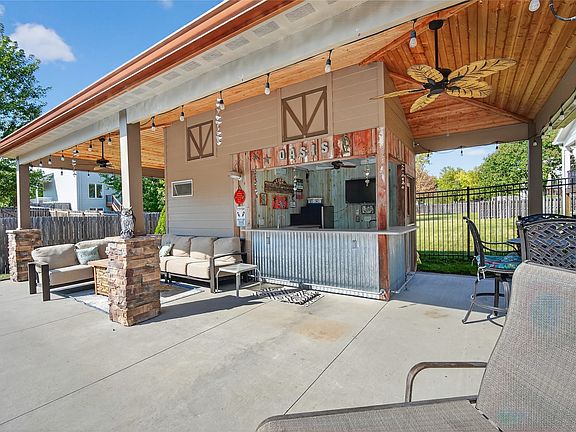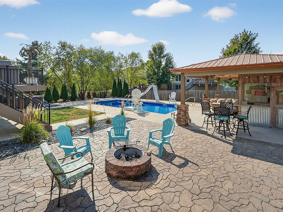 Outside is where this Home truly shines! a heated saltwater pool, open deck, fire pit, and a TIKI bar with glowing string lights. Cushioned bar stools invite you to relax, sip a drink, watch TV, and enjoy your own backyard paradise.