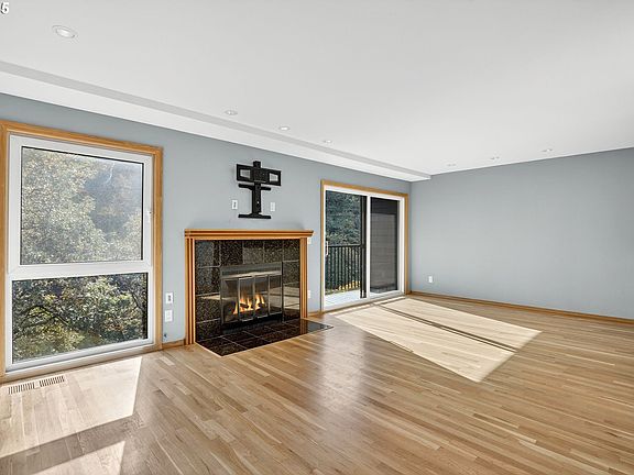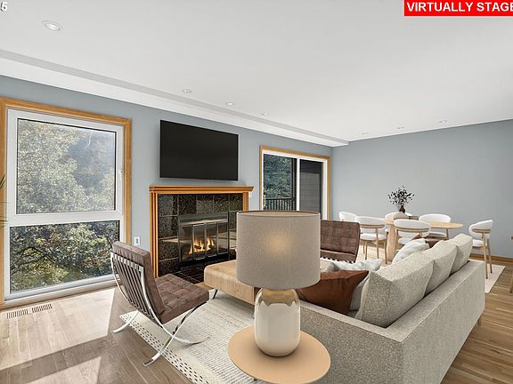 Live among the treetops in this stunning 2 level, 2 bed, 1.5 bath SW Portland condo just minutes from downtown and PSU University District! Enjoy serene privacy with incredible east-facing views of Duniway Park, Marquam Nature Park, OHSU, and the Cascade Mountains from your own covered deck. Main level welcomes you with warm hardwood floors and an inviting open layout that connects kitchen, dining, and living areas. A wood-burning fireplace adds cozy charm, while the slider door to the deck brings in natural light and those breathtaking views. The well-appointed kitchen features slab granite counters, stainless steel appliances, shaker-style cabinets (some with glass fronts), under-cabinet lighting, and a custom tile backsplash. Downstairs, you’ll find two spacious bedrooms, each with wonderful treetop views. The primary bedroom includes built-in bookshelves and an oversized closet, while the second bedroom offers a closet organizer for smart storage. The full bath showcases elegant tile floors, a large soaking tub, brnad new door, and the laundry area with washer and dryer adds everyday convenience. Downstairs also has upgraded electric panel & Alexa enabled plugs. This condo community has many recent updates including new siding, roof, windows, exterior paint, deck, railing. A shared storage closet is right outside your door, plus there is 1 assigned covered carport parking space. Perfectly located minutes to OHSU, downtown Portland, I-5, and Hwy 26, this peaceful retreat offers urban convenience with a natural setting.