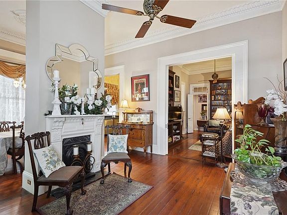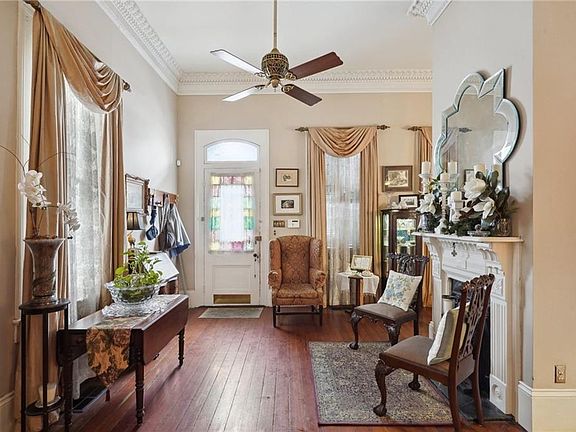 Located in the heart of the French Quarter, this charming historic home blends classic elegance and New Orleans charm. Watch the second line parades go by from your front porch as your home proudly displays its sunburst panel work, stained glass doors, decorative cornices, turned wood balustrades, period brackets and period architectural details. Step inside to discover 12’6” ceilings, original pine floors, and intricate molding throughout. The inviting dining room features a beautiful fireplace, built-in shelving, and decorative moldings, while the kitchen is a chef's dream with a 48-inch DCS range, Subzero side-by-side refrigerator, and a center island with a bar sink—great spot for showcasing your culinary talents. The cozy living room/parlor with a fireplace and built-in bookshelves seamlessly flows into another parlor through elegant pocket doors. The expansive primary suite features 16-foot ceilings, French doors leading to a private courtyard, and a luxurious en-suite bath with a Jacuzzi tub, separate shower, and gorgeous marble vanity. The guest bedroom on the first floor includes a period mantel and full bath, while a spiral staircase leads to a third bedroom and bath on the second level. Outside, a sweet courtyard with brick walls, planters, and an awning covered porch offers a serene retreat, just in time for Mint Juleps. This rare gem offers historic charm in one of New Orleans’ most desirable locations where restaurants, live entertainment, art, culture and more are just outside your door. Schedule your tour today!