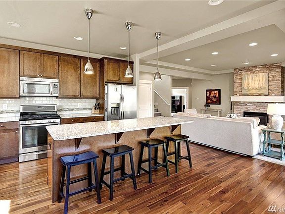 Newer 4 BR + bonus room & 2.5 BA home, approx. 3,200 sq. ft. Well-appointed with attention to detail, extensive hardwood floors, natural stone surfaces (quartz & granite). Entertainers dream kitchen w/large island, under cabinet lighting + walk-in pantry. Floor to ceiling ledgestone gas fireplace in great room. Main floor master with spa-like details including a walk-in shower & soaking tub. Amazing back deck area including fire pit, trellis and hot tub. Perfect for having get togethers!