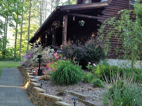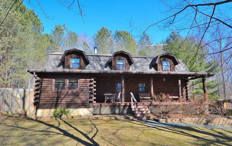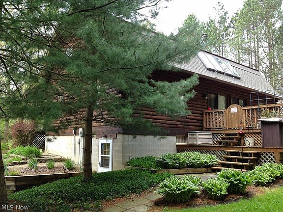 Welcome to this unique and custom built log home tucked away on a private 4 acre lot. Covered front porch welcomes guests to your front door and also serves as comfortable sitting area. This floor plan is open and practical with ample living area. Great room features skylights and a wood stove that is perfect for cold winter days. Gorgeous Eat-In Kitchen offers custom hickory cabinets, corian counter tops and stainless steel appliances. An overhead log catwalk connects the spacious master bedroom and additional 2 bedrooms. Full bathroom has been updated with a beautiful tile shower and tile floor. Full finished walk out basement has plenty of space for a TV area, crafting/office with built-in shelves and desks and storage. 1st Floor laundry room and a half bath. Back yard has so much to offer: 3 decks, brick patio with 2 raised beds and a screened in gazebo which is a perfect way to unwind after a long day and enjoy all the beauty of the nature. 2 Garages are large enough to fit 3 car