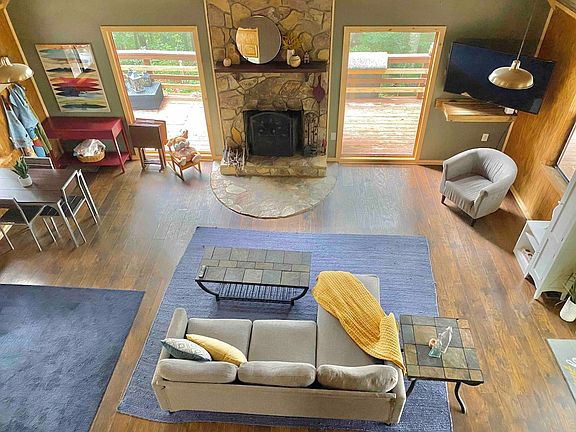 Beautiful fully furnished, top of the mountain cabin less than 10 minutes to grocery, Starbucks, brewery etc. Cozy fireplace, wall of windows to take in the view! Owner pays for all utilities. NO smoking on premises. Dog's OK. Neighbor has free range dogs who may come visit. Tenant assumes responsibility for their own pets and pets must remain on property.
