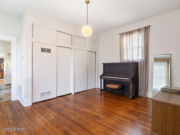 Charming circa 1900 Schnitzelburg home with 2 bedrooms and a modern feel! Welcome to this previously updated home that perfectly blends historic character with contemporary style in the heart of Schnitzelburg. You will be greeted by the inviting covered front porch, complete with decorative ironwork railings - perfect for morning coffee or evening relaxation. The classic blue siding with crisp white trim gives this home wonderful curb appeal. Beautiful hardwood floors flow throughout the home, complemented by carefully chosen modern paint colors. The heart of this home shines with its modern kitchen featuring granite countertops and attractive open shelving along with matching white appliances. The updated full bathroom includes classic subway tile with a decorative mosaic accent band, modern fixtures, and a dark vanity that contrasts beautifully with the bright white tilework. Both bedrooms are spacious and the primary offers a decorative fireplace. A dedicated laundry room with barn door entry provides convenient functionality and additional storage potential. The fully fenced backyard provides a private retreat with a mature shade tree, ideal for outdoor entertaining, gardening, or simply enjoying Louisville's beautiful weather. There's plenty of room for grilling, play equipment, or creating your own urban oasis. You will be located near all of the dining, shopping, and entertainment this area has to offer. Don't miss your chance to make this house your new home - schedule a showing today!