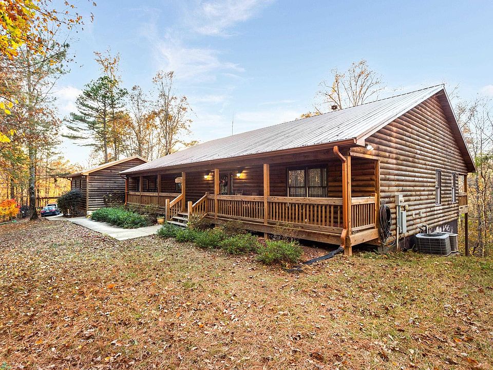 RARE FIND! 8+ Acres with a MOVE IN READY home and an active stream, extensive wildlife with a "Tree House Feel". This property is a MUST SEE! This gorgeous 4 bed 2.5 bath home features a wooden stove, custom built-ins, hardwood floors, and a large covered back deck. The spacious kitchen features an island with breakfast bar, office area, double oven, freshly painted cabinets, pantry, and more! Boasting an open concept, this home is ideal for entertaining. The large master suite, on the main level, has access to the back deck, his and hers closet, and a double vanity. Basement features home theater with AMAZING sound and light dimmer, three generously sized spare bedrooms with closets to suit. Also located in the basement is the den/family room, a full sized bathroom, and access to the covered patio. Follow the creek down to a campsite with a fire-pit, perfect for those fall bonfires! This property also features a shooting house, chicken house, fenced in area, and storage for wood.