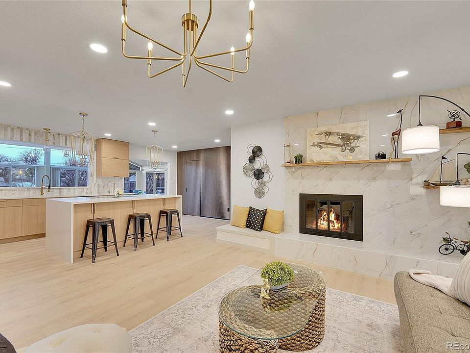 Welcome to 830 Welch, an exquisitely renovated modern residence nestled within one of Lakewood’s most peaceful and highly coveted neighborhoods. This expansive 5-bedroom (2 basement non-conforming), 3-bath luxury home has been reimagined with sophisticated finishes, refined craftsmanship, and an effortless blend of comfort and elegance. Step inside to discover new flooring throughout, guiding you into a bright, open layout. The formal living room sets an elegant tone, while the cozy den with a fireplace offers the perfect spot to unwind. A stylish panel accent wall with a hidden door adds architectural interest and a touch of intrigue. The primary suite serves as a private sanctuary, featuring a luxurious double-sink vanity, a large spa-inspired shower with an illuminated shower niche, and thoughtfully selected finishes that evoke calm and indulgence. The heart of the residence is the gourmet chef’s kitchen, a showpiece of luxury featuring premium materials, a spacious double oven setup, and an impressive large kitchen island that serves as both a culinary workspace and a stylish gathering point. This extraordinary kitchen opens gracefully to an oversized solarium, creating an effortless environment for both grand gatherings and relaxed everyday living. This elevated space floods the interior with natural light to offer year-round enjoyment. Outdoor living shines here as well—step onto the large deck overlooking an ample sized, and fully fenced yard, ideal for morning coffee or hosting summer evenings under the stars. Additional highlights include a spacious two-car attached garage, thoughtfully updated interior and exterior spaces and plenty of room to spread out across multiple living areas. Modern, warm, and move-in ready, 830 Welch offers elevated living in a peaceful Lakewood setting. This is the home you’ve been waiting for.