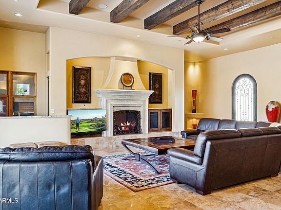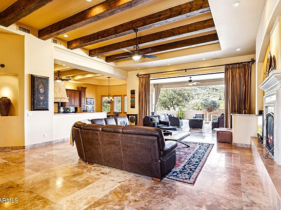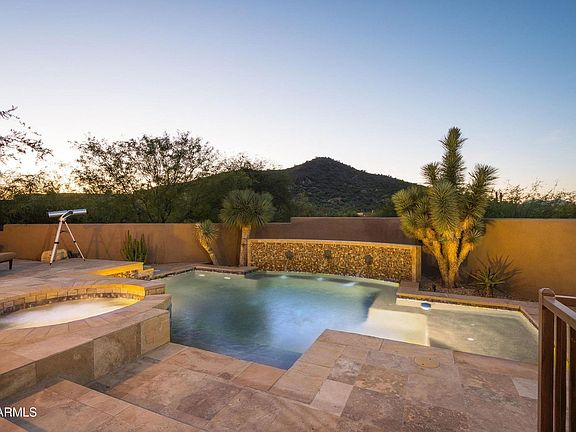 Where Mediterranean charm meets the soulful simplicity of Territorial architecture, this home delivers a warm, inviting style that feels both timeless and distinctly Southwestern. This home is nestled deep within North Scottsdale's premier, guard-hosted community of Sincuidados. Set on a private 1-acre lot, the home captures unobstructed views of Lone Mountain from a beautifully landscaped backyard. A spectacular 16' fully retractable glass wall at the great room dissolves the boundary between indoors and out, creating an effortless flow for upscale entertaining. As you enter through the iron and wood door at the front of the residence, a secluded 1190 sq. ft. courtyard enclosed by 12' walls offers a serene sanctuary where the sun, moon, and stars paint an ever-changing canvas above. The main house features a luxurious primary suite with a sitting area beside a two-sided fireplace that brings together an inviting retreat to shed the day's stress. There's an exceptionally large closet designed for the true clothes enthusiast. At the opposite end of the home, an in-law suite with its own private den provides an ideal second primary for multi-generational living or long-term guests.