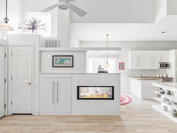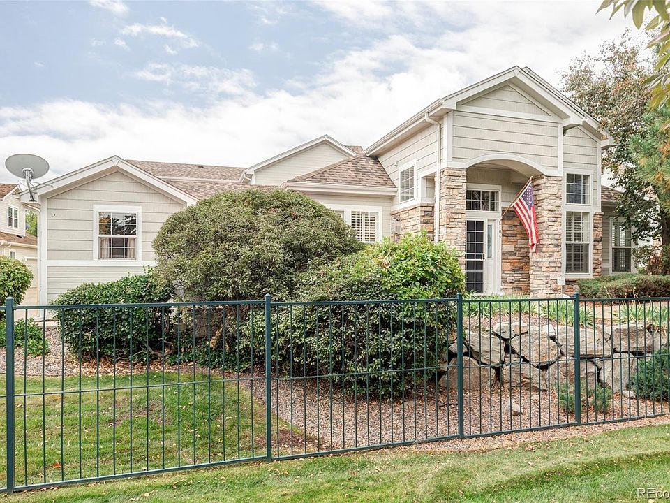 Thoughtfully designed for effortless main-floor living with no stairs and a spacious primary suite on the MAIN LEVEL! Bathed in generous natural light from abundant windows, this beautifully renovated end-unit townhome in Pelican Pointe offers the perfect balance of privacy, comfort and style. Thoughtfully reimagined for modern living, the open-concept floorplan flows effortlessly between a remodeled kitchen with custom cabinetry with a gas range, a bright dining area and a living room centered around a sleek gas fireplace. Expansive sliding glass doors open to an enlarged private patio surrounded by lush landscaping — an ideal retreat enhanced by a retractable awning for year-round enjoyment. A rare detached, fully finished and heated home office or hobby room provides flexible space for work or creativity. Both baths are luxuriously updated, including the primary suite, complete with dual closets and a spacious walk-in shower. With new LVP flooring throughout, lofty ceilings and a quiet location beside the High Line Canal, this turn-key residence is an exceptional sanctuary in a coveted community. Residents enjoy full access to amenities at the adjacent community of Tava Waters, including the use of the pool/hot tub, fitness center, clubhouse, playground, rock climbing wall and more.