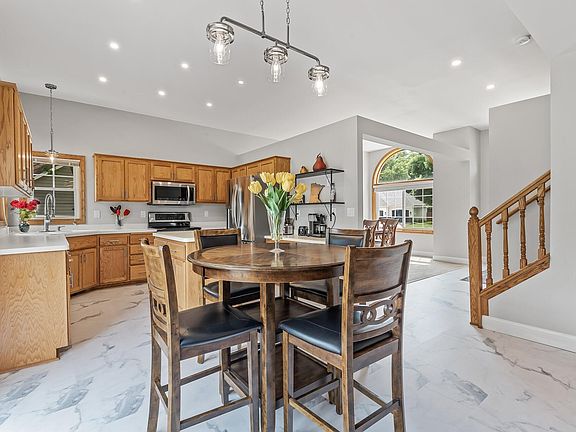 Wonderful 5-bedroom, 4-bath modified two story in great Maple Grove neighborhood! Gorgeous paver patio and beautiful landscaping welcomes you to the spacious front entry with new flooring and fresh paint on the main level. The open kitchen features stainless steel appliances, center island, new hardware and updated lighting. Step onto the large deck from the informal dining room for great outdoor entertaining! Main level office or bedroom and great mudroom space. Three bedrooms up, including primary bedroom and ensuite bath with separate shower, jetted tub, and walk-in closet. Newly refinished lower level features family room with wet bar, bedroom, 3/4 bath, and plenty of storage. Highly desirable 3-car garage and great access to parks, schools, shopping and restaurants.
