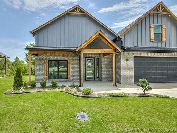 Beautiful new construction located in the Willow Gorge subdivision - Verdigris school district. Leading up to the home, you are welcomed by a lovely covered porch and enter into a two story entry. The bright living room has vaulted ceilings and a fireplace that runs the entire length of the wall. The built-ins on either side provide ample storage. Warm wood look tile flooring throughout the downstairs. The kitchen and dining room are tucked to the side connecting the open space to the living room. Double doors in the dining room lead out onto the covered back patio for an easy transition in and out when entertaining. The massive quartz island has plenty of room for seating and a built in microwave/storage. Walk-in Pantry with room for customization. The primary suite is downstairs & bathroom tile choices are exquisite. The Remaining bedrooms are upstairs as well as a dedicated game room. USDA financing eligible area!