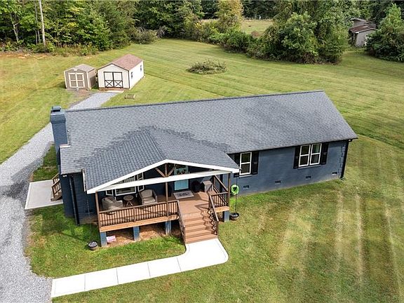NO HOA! A terrific opportunity to own 2 acres in Stokesdale! Gorgeous updated ranch is ready for its new owners. This home features one level living, high ceilings in the main living area, and tasteful updates throughout. Custom closets in all bedrooms, leathered granite countertop in the kitchen, newer covered front and back porch. Lots of cleared flat land for all of your hobbies! A great place to own chickens, have a garden, build a pool or a workshop. Two sheds will be left with the property.