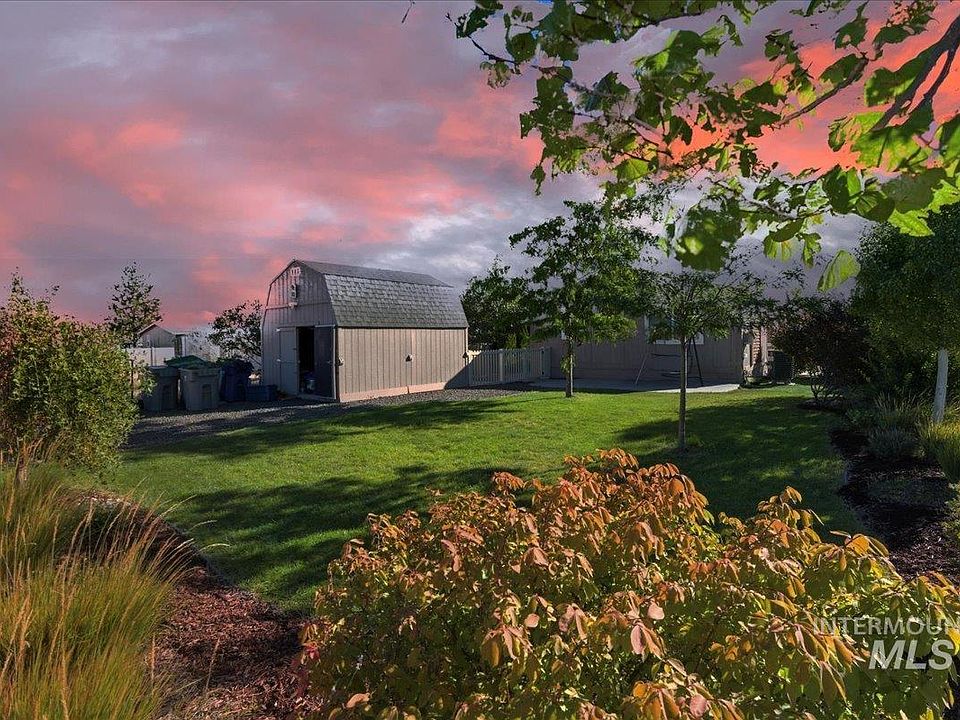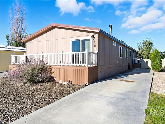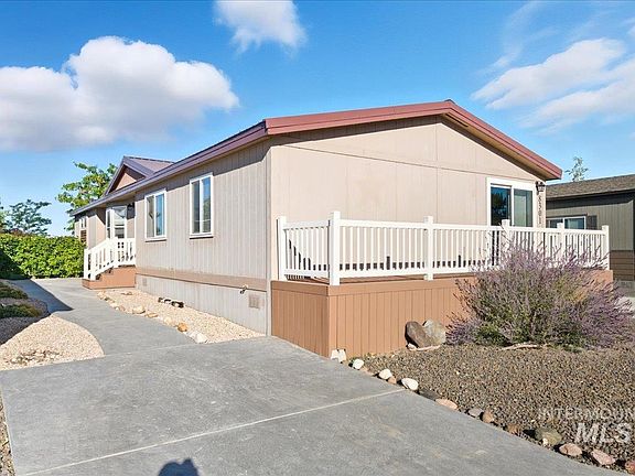 Generously sized 4-bedroom, 2-bath well-kept manufactured home with vaulted ceilings, wood stove, tile floors, and an open-concept layout built for comfortable living and entertaining. Sun-soaked living spaces highlight the home, while dual driveways and a large storage shed offer plenty of extra space. The fully fenced yard features a dog run, stamped concrete, and mature landscaping, all maintained pesticide-free. With no backyard neighbors and wide-open views, you’ll love the peace and privacy. Start your day with sunrise coffee on the front porch and wind down with fiery desert sunsets. Prime location near Micron, Lucky Peak, and I-84 — perfect for work or weekend escapes.