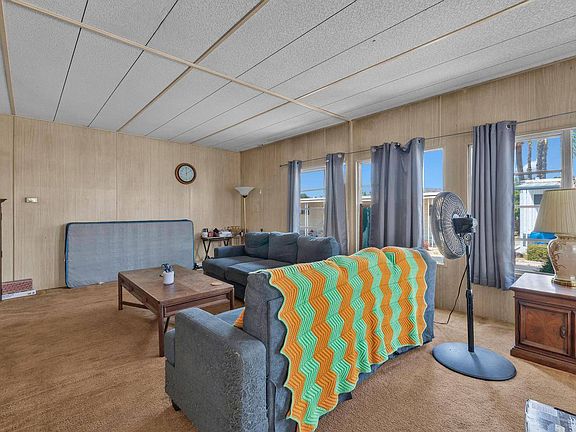 Welcome to this affordable home in the beautiful 55+ community of Meadowbrook in Santee! You will love making this home your own. Home features fresh exterior, interior painted cabinetry, re-seal roof this year, 3 avocado trees and a peach tree. The living area is spacious as are the 2 bedrooms. Includes 2 sheds and plenty of yard space. Priced to sell fast and No Property Tax, home is on annual registration. Don't wait, Call Today! (AAP3860)