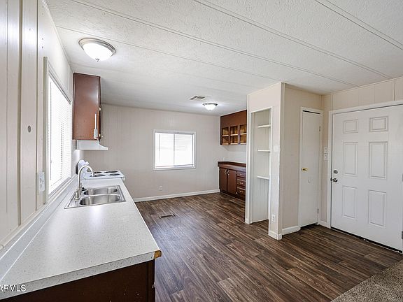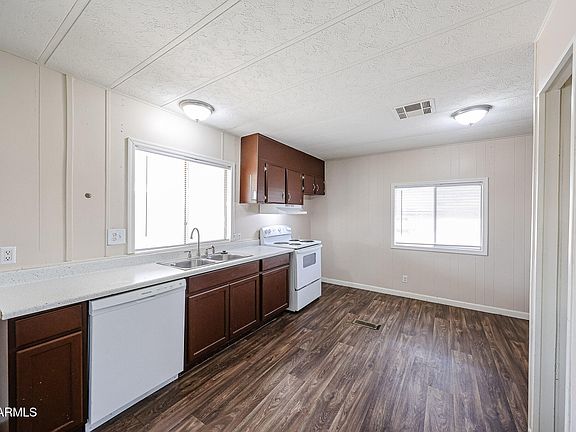 Welcome to this charming 3-bedroom, 2-bath home in the desirable Sun Garden community! Featuring fresh interior paint, laminate wood flooring, and plush carpet in the bedrooms, this home offers a light and inviting atmosphere. The spacious living area flows into an open kitchen with ample cabinetry, a built-in buffet, and plenty of natural light. Outside, enjoy a large covered patio that runs the length of the home - perfect for relaxing or entertaining. A fenced yard and play set add extra appeal, while the carport offers covered parking . Sun Garden is a pet-friendly, all-ages community filled with amenities, including a sparkling pool, fitness center, children's playground, and dog park.