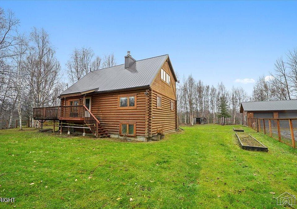 Log home. Needs some structural work so it's cash only. Beautiful unrestricted lot. Fenced yard. Great place for a garden. Close to Hatcher Pass
