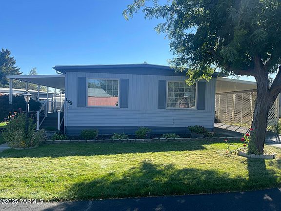 8301 Tieton Dr - 55+ Gated Community Living! Welcome to this well-maintained 2-bedroom, 2-bath home offering 1,368 sq. ft. of comfortable living in a desirable 55+ gated community. Designed for easy living and convenience, this home features a durable metal roof and siding, a new HVAC system, and a spacious covered deck with new outdoor carpet under the carport -- perfect for relaxing or entertaining. Inside, you'll find plenty of storage, a nice open kitchen, and a bright, welcoming layout that's been lovingly cared for. Community Amenities: Located directly across from the recreation center, you'll enjoy:Seasonal outdoor pool,Indoor fireplace lounge & card area, Pool table, Exercise room, Full kitchen for large gatherings, Additional Perks: RV storage available for just $20/monthLot rent includes water, irrigation, sewer, snow plowing, recreation center access, and secure gated entrance. Fully paved community with beautifully maintenanced grounds. This move-in-ready home offers comfort, security, and a vibrant community lifestyle -- all in one great location at Mobile Manor Park. Loan options for manufactured homes inquire with Jennifer Harrington With All Square Mortgage 509 698 3200