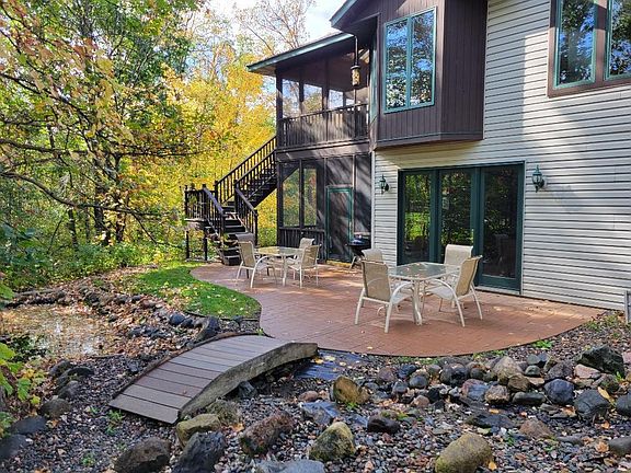 Beautiful Breezy Point Golf Course home with 7 bedrooms, 5 bathrooms and comes fully furnished. This home is loaded with upgrades and features like the open floor plan, vaulted ceilings, large gourmet kitchen with granite countertops, 14 x 14 screen porch off the dining area, a cozy stone fireplace in the living room, and a primary bedroom boasts another fireplace, walk-in closet and a private bath with a double sink granite top vanity, jetted tub and separate tile shower. This home takes entertaining to the next level with a wet bar, pool table, and stone fireplace in the lower level Family room which walkout to a 14 x 14 three-season porch with a sauna and hot tub! The yard is professionally landscaped with a great water feature with fountain, in-ground sprinkler system, large patio area, and a nice deck off the upper level screen porch. The Sellers have been using this home as a short-term rental. Too much to list everything!