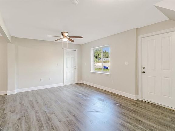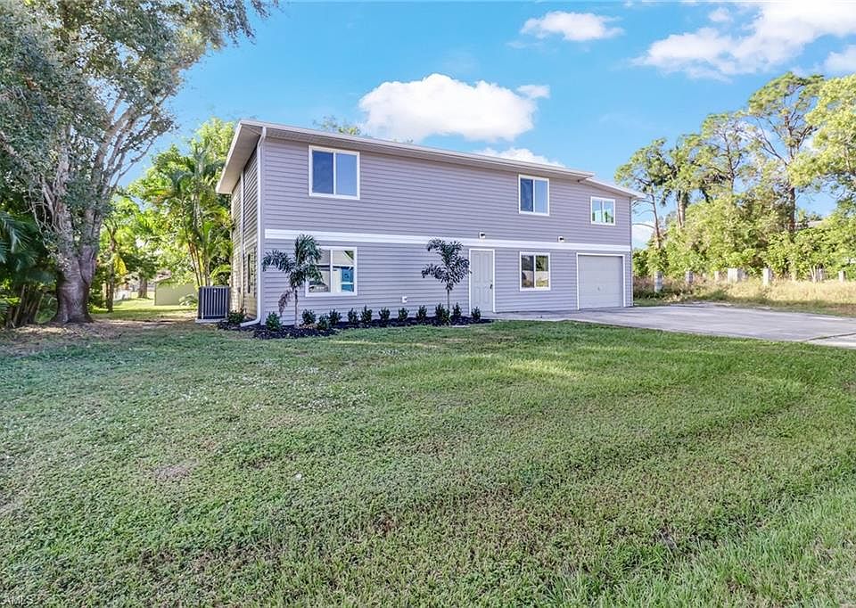 Beautifully remodeled home with brand new roof, AC, hot water heater, siding, hurricane impact-rated doors & windows that are energy efficient. There are 3 bed 2 bath w/den offering living rooms on both floors. The kitchen features a long breakfast peninsula, white shaker cabinets, granite countertops, stainless steel appliances. The first level features a living room, den and large master bed w/ walk in closet, large beautifully tiled bath w/ walk-in shower, tempered shower glass doors. This open floor plan home boats brand new durable, water proof vinyl planking throughout, new interior doors and is freshly painted. The 2nd floor has 2 large bedrooms, kitchen, dining & living rooms, full bath w/ tub shower. There is a large 20 x 10 outdoor deck to enjoy barbecuing. The entire well water system was replaced and includes a water softner purification system. There is deep 1 car garage and a washer/dryer hookup. Located in San Carlos, just minutes to I-75, Gulf Coast Town Center, FGCU, beaches, entertainment and more.Schedule your appointment today this home will not last!