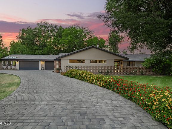 Nestled in the exclusive South Tempe neighborhood of Buena Vista Ranchos, this home is the height  of familial  warmth, timeless charm and the owners have taken meticulous care of it. The property is set on over an acre which has an abundance of mature trees giving shade over the various entertainment areas on the lot. The lush resort style yard offers a beautiful heated  Salt Water pool with gazebo, a build in barbeque grill, wonderful fire pit area to relax and wind down after a long day. The ground floor of the home comprises of a large gourmet kitchen with walk in pantry, a breakfast dining nook, sitting room, living room, formal dining and home office.  The primary bedroom suite along with two other bedrooms, one which is ensuite and has access to a private patio and there is also an additional bathroom on this level. The Basement has a large recreational room  where a home entertainment system has been installed which includes a projector and surround sound, which conveys with the sale. On this level there is also a charming wine cellar, an ensuite bedroom, a utility room and a home gym area. The property has easy access to major freeways, Sky Harbor, shopping and restaurants.  There are also wonderful hiking opportunities close by at South Mountain.  This wonderful home sits at the end of a quiet cul-de-sac and is  an impressive unique property.