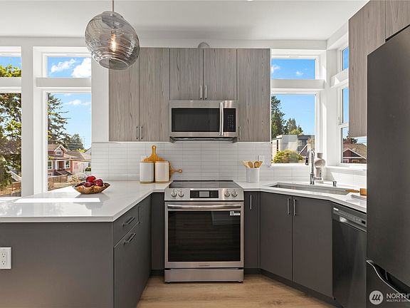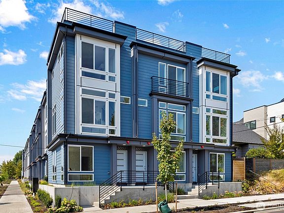 AVAILABLE RATE AS LOW AS 3.25% w/preferred Lender (qualifications apply)! Experience elevated living at Serene by MRN Homes in the heart of Ballard. This stunning corner end residence showcases modern living at its finest with walls of windows, sunlit interiors, & designer finishes throughout. An open-concept main level boasts a chef’s kitchen, premium stainless steel appliances, & sleek cabinetry. The top-floor primary suite features a spa-like bath & generous closet space. Lower-level ensuite provides flexibility for guests or a stylish home office. Spacious rooftop deck w/water, electricity & peekaboo Sound views—is perfect for entertaining. Minutes from Golden Gardens, boutique shopping, top dining & the iconic Ballard Farmers Market.