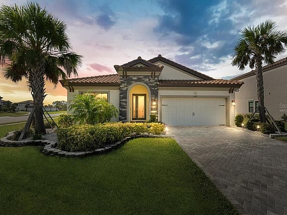Welcome to the desirable Crosswind Ranch community. This stunning Sandpiper model built in 2023 offers the perfect blend of elegance, functionality, and modern design across nearly 2142 sq ft. There is no need to wait for new construction with this move-in ready home featuring abundant upgrades! This 3-bedroom, 3-bathroom home with an additional flex space which is perfect for a home office or guest room. It has a 2-car attached garage with paver driveway, front walkway, tile roof, and is located on a spacious corner lot. Upon entering through the front door, you’ll be pleasantly surprised with the abundant natural light and open-concept floor plan, perfect for everyday living and entertaining. Enjoy upgraded LVP flooring throughout the main living areas and flex room, and upgraded carpet in the bedrooms. The modern split floor plan which is ideal for room separation and added privacy, as well as an interior laundry room off of the garage. The gourmet kitchen with beautiful upgraded gray cabinetry, sleek white quartz countertops, herringbone pattern tile backsplash, a large center island with ample seating. It also includes GE Gourmet stainless steel appliances, such as a wall oven. Microwave/convection oven, a 30” gas cooktop, and a generously sized pantry with frosted glass front door. It transitions seamlessly to the dining area and living room. From the living room there are 4 sliding glass doors that open all the way across to open up to the oversized screened-in lanai, which is perfect for your morning coffee or relaxing at the end of your day, while enjoying partial views of the preserve and stunning sunsets at night. There is a fully fenced rear yard with room for a pool. The primary suite is thoughtfully located in the rear of the home and includes an en-suite bathroom with a tiled walk-in shower with built-in niche, dual vanities, and two walk-in closets. The other two bedrooms are located toward the front of the home, one with an en-suite bathroom with a tiled walk-in shower with built-in niche, and the other with access to the hall bathroom with a tiled tub/shower combo. The owner has spared no expense with upgrades including recessed lighting throughout the entire house, 8' interior doors, a tankless gas water heater, a water filtration system, ceiling fans in all bedrooms, the living room and on the lanai, Carrier HVAC with humidity control, and plantation shutters throughout the entire home . This home has also been wired for a natural gas generator hookup and comes with a new tri-fuel generator which has the capacity to provide electricity for the entire house during a power outage. Crosswind Ranch offers exclusive amenities, including a pool, cabana, pocket parks, and scenic pond views—with future additions like Pickleball courts and a Dog Park on the way. Crosswind Ranch provides both comfort and convenience with close proximity to US-301, I-75, and Ft. Hamer Rd provides easy access to Lakewood Ranch, downtown Bradenton, Tampa and Sarasota airports, St. Pete, and of course the stunning gulf coast beaches. Now is the perfect time to move to the growing area of Parrish with expansion on Moccasin Wallow Rd featuring shopping, dining, medical facilities and the growing Marketplace on 64 in Bradenton, just one exit away on I-75. Don’t miss your opportunity to call this one home, schedule your showing today!!