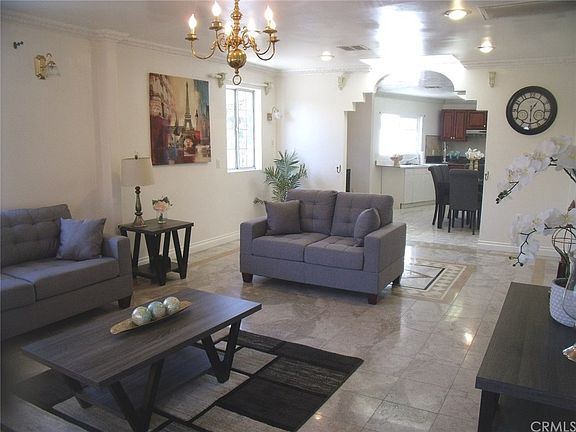Spacious living room with marble flooring , recessed lights,sky light and crown moldings. Dining area with tile flooring. Upgraded kitchen with granite counter top. Master bedroom with private remodeled bathroom and new laminate floor (new toilet) New air conditioning unit. Second bathroom with tile floor, walls, and reglazed bath tub. Tile roof. Garage is dry walled. No popcorn ceilings. Avocado and banana trees on back yard.