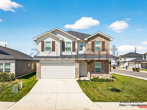 Welcome to this stunning two-story home located at 8303 Kettles Ridge, nestled in the picturesque Red Hawk Landing community in San Antonio, TX. This beautiful property boasts a contemporary design with a charming brick and siding exterior that exudes curb appeal. As you step inside, you'll be greeted by a spacious and bright interior, featuring high ceilings and large windows that allow natural light to flood the space. The open floor plan seamlessly connects the living area to a modern kitchen equipped with stainless steel appliances, sleek countertops, and ample cabinetry, perfect for culinary enthusiasts.