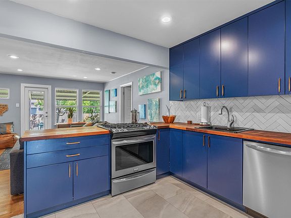 This stylishly updated 1960s home blends vintage character with modern comfort in one of Austin's most convenient central neighborhoods. Inside, you'll find a thoughtfully renovated kitchen with bold blue cabinetry, sleek butcher block counters, stainless steel appliances, and a striking herringbone tile backsplash all open to a light-filled living room with hardwood floors and fresh paint throughout. The open-concept layout is perfect for entertaining or relaxing, with large windows that bring the outdoors in and a seamless connection to the covered back patio and private yard. Fresh finishes, functional flow, and inviting colors make this home move-in ready for a tenant looking for both personality and practicality. Just minutes from major employers, grocery stores, local restaurants, and transit routes this North Central gem is the ideal mix of location, style, and ease.