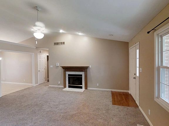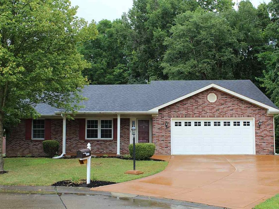 Located in Copperfield on a nicely landscaped culdesac lot with a very private wooded backdrop, this full brick ranch custom built by Jimmy Kaster is a true find! Entering the home, you are greeted by the spacious great room with soaring vaulted ceilings, newer carpeting, and a gas log fireplace with solid wood mantle, and marble surround. The home features a split bedroom floor plan including a very comfortable master suite with private sitting area, en suite bath, and a large walk-in closet w/ built-ins. From the great room, the vaulted ceilings continue into the kitchen which offers an abundance of custom cabinetry, a nice sized pantry, and generous dining area. Adjoining the dining area is the heated and cooled sunroom that affords views of the stunning private lot. At the other side of the home, you will find two additional generously sized bedrooms, both with walk-in closets, as well as the second full bath. Other mentionable features are the 2 car attached garage, the covered front porch, and signature details throughout that define a Kaster home! Improvements of note include the dimensional shingle roof in 2012, HVAC system in 2013 w/ high efficiency furnace, and new water heater in 2014.