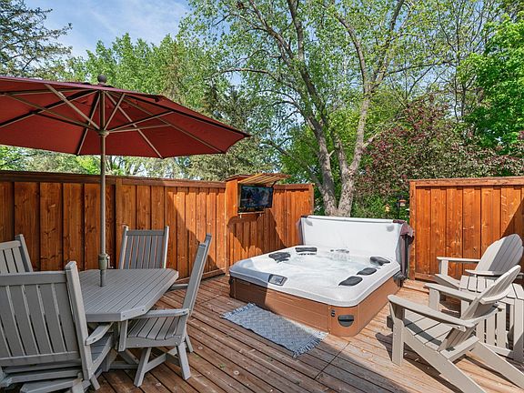This spacious 3 bed/3 bath home is situated on a beautiful corner lot filled with several mature & flowering trees. Relax this summer on the private deck & enjoy soaking in the hot tub complete with an outdoor TV. The home is very spacious with an open living room on the upper level & huge lower level family room perfect for entertaining. Room for additional 4th bedroom in lower level. Garage is heated & insulated for your winter projects. Just out back you will find a storage garage/workshop perfect for lawn mowers, tools & yard equipment & is wired for cable tv. The home has several major updates including new A/C unit, water heater, irrigation system, updated kitchen, roof, leafless gutters, hot tub, updated basement w/pool table restoration, carpet, 200 amp electric panel, new patio door & more. The home is located close to several parks & trails. Sleepy Hollow Park & Arbor Point Trail system just a 1/2 block away, Simley High School 1 mile. Close to shopping & restaurants.