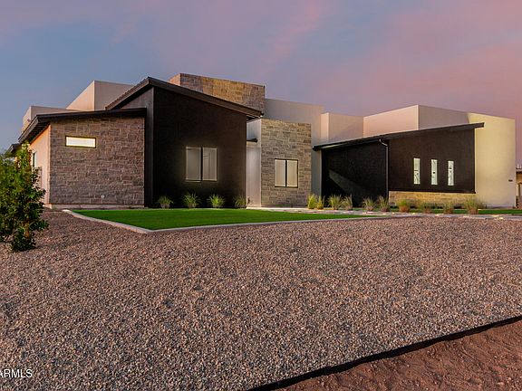 Experience the perfect blend of sophistication and modern desert design in this brand new residence built by AAR Development. Showcasing a striking elevation with stone veneer, landscape lighting, and a private block wall, the home makes a bold first impression. An oversized four-car garage with 11-foot ceilings and an electric car charging outlet provides both function and convenience and perfect for the car