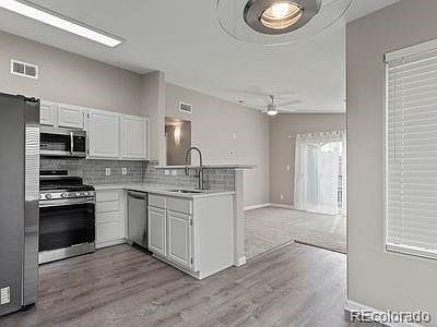 Beautifully remodeled condo in great location! Close to DTC, shopping, restaurants, entertainment and transportation. Top floor unit. Large eat-in kitchen with lots of cabinets, stainless steel appliances and new quartz countertops with custom tile backsplash. Open floor plan. Large living room with balcony and great mountain views! Huge master bedroom has large walk-in closet and private bathroom with soaking tub. Secondary bedroom is large with tons of closet space. Great amenities including pool, hot tub, exercise room, clubhouse and access to all 4 recreational centers in Highlands Ranch. New window blinds, door hardware and some new lighting fixtures. Oversized garage (#D) with opener and keypad. Move-in ready! Must see! Hurry!