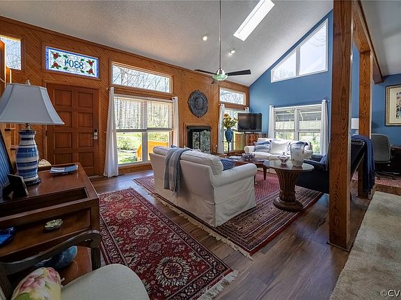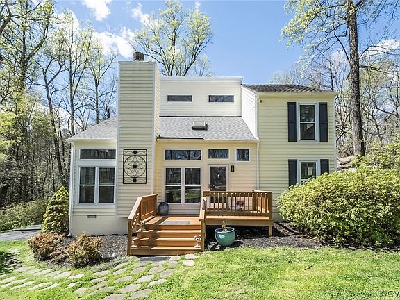 Welcome to 8304 POPLAR HOLLOW TRAIL! You don't want to miss this stylish contemporary home. Enjoy the tranquility of the Spring Grove neighborhood in this 4 bedroom, 2 full bath property. Inside the vaulted living room has built-in book cases lining the back wall to hold all of your treasures. A beautiful fireplace with gas logs can keep you cozy on cool evenings. The dining room has lots of natural light and is open to the living room and kitchen. The spacious kitchen has gorgeous navy blue cabinets and quartz countertops with a SS sink, SS appliances and a pantry. Enjoy entertaining on the large, covered deck off the Kitchen overlooking a huge beautiful fenced in backyard with a Leaf Guard gutter system. Above is also a private deck off the vaulted Primary Suite with double closets and vanities, soaking tub and stand-up shower. Upstairs there's an office/bedroom with built-in shelving and 2 additional bedrooms on the first floor that share a full bath. Close to Routes 76 & 150, shopping, dining and great schools near the heart of Bon Air. Schedule your appointment today to see this gem! Azalea Pictures are from last year.