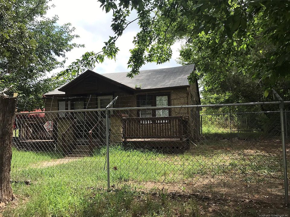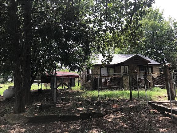 10 acres with pond. Stone cabin has 1 bedroom with wood floors. 2 car carport, nice storage building, shed and storm cellar.