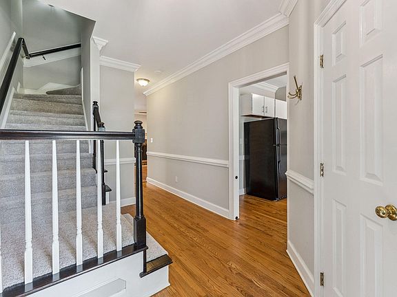 Gorgeous townhome in an AMAZING North Raleigh location with numerous updates! The kitchen shines with granite countertops, a beautiful tiled backsplash, under-cabinet lighting, new sink/faucet, and updated hardware. Hardwood floors in the kitchen and new vinyl plank flooring in the living and dining areas create a modern feel. Fresh paint, new lighting, and detailed trim enhance the main level, while smooth ceilings add an elegant touch. Upstairs, find brand new carpet on the stairs and second floor, plus updated baths with marble countertops. The spacious primary suite offers comfort and style, and the washer/dryer and refrigerator convey for added convenience. Step outside to a private back deck with a wooded view-perfect for relaxing or entertaining. Community amenities include pool and tennis courts. Move-in ready and close to North Hills, Lafayette Village, Whole Foods, highways dining-don't miss this one!