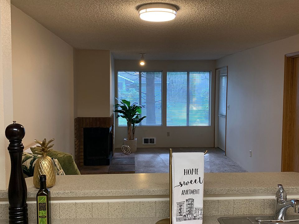 FREE PARKING! Excellent Location! One bedroom apartment in the heart of Kirkland borders, Redmond and Bellevue. Walking distance to dining, shopping, Costco and more. Close to beaches, entertainment and work. Wood burning fireplace. Double door entry to large bedroom with enough room for a king size bed. Large bathroom and framed mirror make this bathroom a pleasure to spend time in. In unit washer/dryer can be added for $100 per month . Covered patio makes it possible to truly enjoy the outdoors year around with additional storage off the patio. Stainless steel appliances.