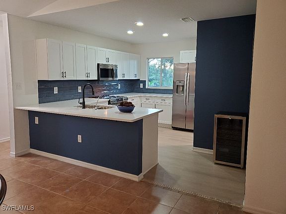 This 3 bedroom, 2 bath home has an extra room that can be turned into a bedroom, used as a theater or game room. Entertain in your newly renovated open-concept living area with vaulted ceilings & lots of light. This lot is a corner & triple lot (most homes in San Carlos Park are only double lots) giving you room for a pool or a custom garage. The new water system provides drinkable water throughout the house and the reverse osmosis system provides your brand new kitchen with water quality similar to Dasani bottled water. Your gorgeous quartz countertops complement shaker cabinets & stainless steel appliances. A quartz island (actually peninsula) provides additional seating to host parties or share a meal. The new 5 burner stove has an oven with the “crisp” mode similar to an air fryer. Also brand new is a washer/dryer, new roof, exterior paint, new vanities, hot water heater, and much more. All bedrooms provide ample space! The primary bedroom suite offers a sitting room open to the bedroom, a walk-in closet with custom shelving and a spa-inspired bath. Nestled in a lovely neighborhood of well-cared-for homes just north of Estero, this home is waiting for you to enjoy!