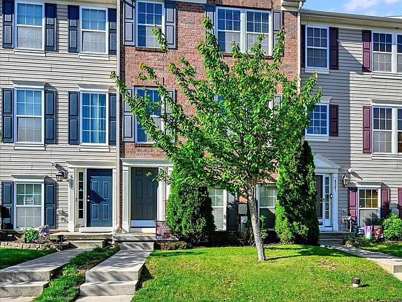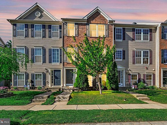 Beautiful brick-front, 3-level townhome with a spacious rear 2-car garage! This 3-bedroom, 2.5-bath home offers stylish and functional living. The kitchen includes hardwood floors, granite countertops, tall white cabinetry, and an island with pendant lighting. The open-concept layout includes a dining area with pantry that flows seamlessly into the kitchen, plus a sliding glass door that leads to the private deck, perfect for outdoor dining or relaxing. Upstairs, you'll find spacious bedrooms with ceiling fan light fixtures for added comfort. The primary suite features a bump-out, a walk-in closet, and both the primary and hall baths showcase classic white tile shower surrounds. Enjoy the convenience of abundant overflow parking, open green spaces ideal for play or dog walks, and a nearby park. Located close to shopping, schools, and major commuter routes, this home blends comfort, style, and everyday convenience!