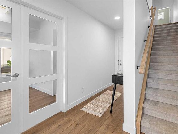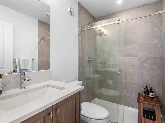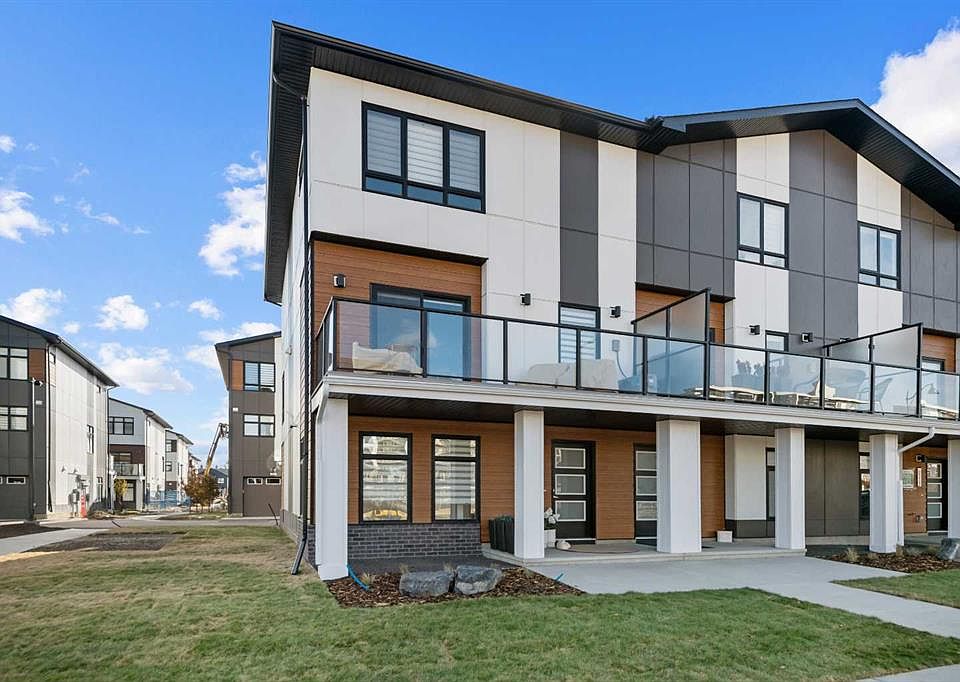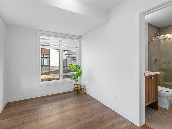 Trico homes brings to West Springs one of the best designed townhomes in this amazing master planned community. Close to everything you would ever want, and in true walking distance. This bright and abundantly spacious corner unit features 4 bedrooms, 3.5 baths, with a unique main level bedroom with full ensuite. As you enter your custom home from your double attached garage, you are greeted into a large foyer. The bedroom/den on this level is very convenient, and a flexible option. The second level boasts 9 foot ceilings, is bright, spacious, fully open, and features a fantastic centre kitchen plan. The formal living and dining rooms are on either side, making this the perfect entertaining space, or just enjoying day to day luxury living. The kitchen was with modern quartz counters and matching upgraded full backsplash. High end appliances for your cooking enjoyment, include a counter gas stove and wall ovens. The kitchen Island is the perfect gathering place for friends and family, as the chef prepares culinary delights, surrounded by premium cabinetry and fixtures. Off the living area there is a huge balcony which can be used as a relaxing extension of the main living area, or additional dining and bbq space, for year round relaxation. The upper floor features 3 additional bedrooms. Two bedrooms facing south with large windows, and a main full bath. The master is truly spacious , bright, and of course has a fantastic ensuite with dual sinks, tub, shower, and walk in closet. This level conveniently has a laundry room, with sink and custom cabinetry. Upgrades total over 30k for this unit which makes it the best value on the market, with 4 Bedrooms and 3.5 baths, and truly like new! The location is unbeatable, close to all parks including the off leash radio park, shopping, restaurants, schools and all of West Springs amazing amenities. Motivated seller due to relocation.