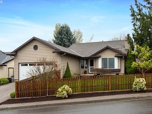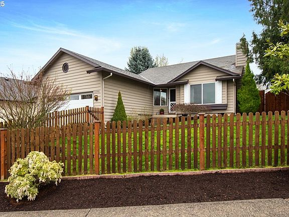 Welcome to this beautifully maintained 3-bedroom, 2-bathroom ranch-style home, offering 1,217 sq. ft. of comfortable living space. Built in 1992, this one-story home has vaulted ceilings, decorative ledges, and abundant natural light that create an inviting atmosphere. The fireplace currently features an electric insert, which if preferred can easily be removed. The kitchen has been updated with stainless steel appliances, a new sink, and fresh laminate flooring, while new carpet and recessed lighting add a modern touch throughout the home. Step outside to enjoy the fully fenced front and backyard, where the seller has enhanced the space with beautiful landscaping and a spacious patio—perfect for entertaining. The insulated, heated garage features recessed lighting, padded flooring, and finished walls, making it a great workspace or hobby area. Additional highlights include a newer water heater (2 years old), easy access to I-5, and a quiet, walkable neighborhood with sidewalks. Don’t miss the chance to make this move-in-ready home yours!