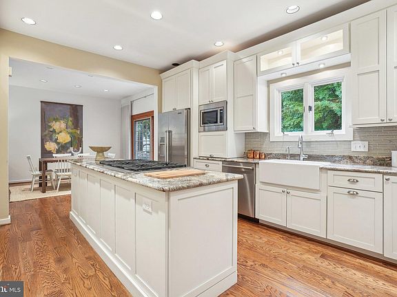This lovely, light-filled 5 BD / 4.5 BA home, which sits on a stunning lot of over 10,000sf, is ideally situated in the sought-after Woodhaven neighborhood and Whitman School District, backing to the Landon School grounds. The contemporary interior offers an upgraded kitchen, upgraded baths, and a recent addition of a cozy sunroom which enjoys direct access to the expansive, lush backyard with tiered deck and pool (The pool and deck stone were completely renovated in 2022). The main level opens to a gracious two-story entryway showcasing hardwood floors, recessed lighting, crown molding throughout. The spacious updated eat-in kitchen (2014) features granite countertops, tiled backsplash, a farmhouse sink, stainless steel appliances, and a breakfast area with direct access to the backyard. Adjoining the breakfast area is a spacious, family room with soaring ceilings and an enchanting stone natural gas fireplace flooded with light from the wall of front-facing windows. Additionally, a sunny living room with fireplace of entryway, formal dining room, and updated powder room complete the main level. The second level landing enjoys tons of sunlight from the surrounding windows and skylights. The generous and sun-soaked primary suite features a fireplace, beautiful bay windows, two walk-in closets, and a recently updated luxury bath with skylight, large tile shower with bench, soaking tub, dual vanity with ample built-ins, and water closet. There are 2 additional spacious bedrooms with an updated full bath sitting between. The third level boasts a private suite with an en-suite bath, perfect for a guest or in-law suite. The finished lower level offers a recreation room and additional bedroom, featuring a full bath and ample storage. Complete with 1-Car Garage and 4-Car Driveway. The convenient location offers a seamless commute to Bethesda, as well as around the DMV with easy access to nearby commuter routes. OPEN SUNDAY MAY 18th 2:00-4:00pm