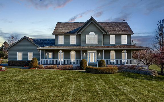SPECTACULAR SPRAWLING CUSTOM COUNTRY HOME nestled within serene Sundial Farms on a picturesque one acre homesite! Imagine starting each day on the inviting wraparound porch, soaking in the surrounding breathtaking views and everchanging sunsets. The porch wraps around to the back deck and charming brick paver patio that perfectly compliments the newly stained exterior and cedar shake roof. The impeccable landscaping and attention to detail is truly unparalleled. Inside, you'll find 5 bedrooms and 3.1 bathrooms offering ample space for your family to grow and thrive. The large master suite offers a relaxing bath and walk in closet. Gleaming hardwood flooring leads you to the separate dining room and eat in kitchen featuring beautiful Amish constructed cabinetry adding a touch of timeless elegance to the already stunning aesthetics in the home. The many Palladian style windows offer an abundance of natural light throughout the comfortable family room and the adjacent living room. ENTERTAINING ON YOUR MIND? JUST WAIT UNTIL YOU DESCEND TO THE FINISHED BASEMENT! The huge recreation room, 5th bedroom, office and full bathroom allow you a tranquil retreat or versatile space ideal for Sunday football games or holiday parties. Summer is just around the corner and this backyard beckons barbeques, baseball and basketball, in-ground hoop is included! Full yard sprinkler system keeps this yard pristine and green! Sundial Farms Subdivision is a friendly and welcoming golf cart community offering horse boarding, RV storage, and neighbors Chain O'Lakes State Park and all of the amenities it offers. Located in an award winning school district, only minutes to the Metra Station, expressway, and shopping and recreation in Lake Geneva too! It is time to make 8306 Country Shire Lane your NEW forever home! Buyer will receive a FREE one year home warranty!