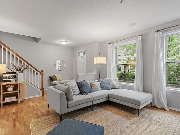 Stunning row townhome in Hartford Commons, featuring beautiful finishes throughout! The main level has an open-concept layout with 9-foot ceilings and sleek hardwood floors. The living room features a gas fireplace with surrounding custom built-ins. The kitchen has granite countertops, a large center island, stainless steel appliances, and patio doors leading out to a balcony deck. Upstairs, you’ll find two bedrooms, two full baths, a versatile loft space, and the convenience of upper-level laundry with newer washer & dryer (2024). The luxurious primary suite includes a walk-in closet and a private bath with dual vanities, a soaking tub, and a separate shower. The finished lower level includes a third bedroom and a 3/4 bath, perfect for guests or a home office. Enjoy this amazing location within walking distance to Eden Prairie Mall, dining, parks, and trails with quick access to I-494, US 212, and US 169.