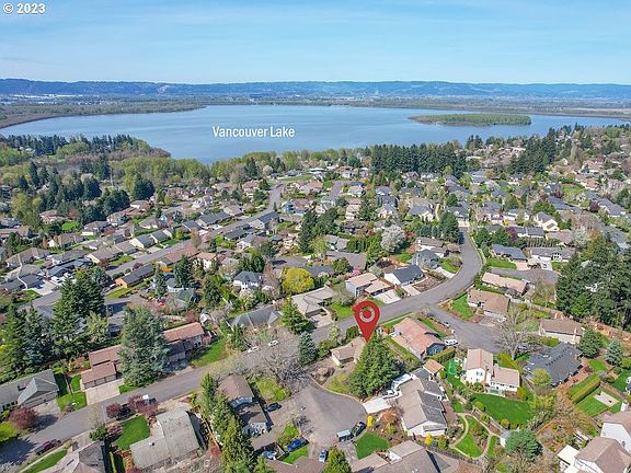 Sought after Lake View Estates ranch located in cul-de-sac and over a 10,000 square foot lot. Home features an oversized living room that is 20 X 15 w/ vaulted ceilings & two skylights. Family room is 21 X 17 which features a beautiful flagstone brick gas fireplace and hearth, wet bar (sink), over six foot counter top, upper & lower cabinets, bar stools to make this a truly great room for entertaining. Family room also has a sliding glass door w/ plantation shutters that leads out to a spacious covered deck. Kitchen has open sight lines to the family room and plenty of upper and lower cabinets. Dining room has a slider out to the deck & conveniently opens to the living room. Hallway bathroom has double sinks, tile counters, backsplash & tile shower w/ bathtub. Spacious 18 X 15 primary bedroom has large 8 X 7 walk-in closet, double sinks, tile counters, backsplash & tile shower. Primary bedroom also has a slider that leads out to a paver patio & Gazebo which is very private. Second and third bedroom have window seats with storage. Solid hard core doors and closet doors. The home features three different areas outside for entertaining. Upgrades include three ton Trane heat pump that was $15,000 & 5-7 year old hot water heater. This home is over 2,100 square feet. Blocks from Jason Lee Middle School, Roosevelt Elementary and Vancouver Lake. 2023 taxes are estimated at $5,061.