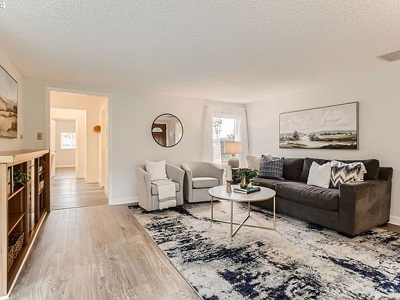 Down a long driveway, situated on a .38 acre lot, sits a nicely updated 3-bedroom, 2-bath home with 1,438 sq. ft. The attached oversized 714 sq. ft. garage features 10-foot ceilings, perfect for a workshop, plus 200 sq. ft. of extra storage above. The kitchen was fully remodeled in 2024 with new cabinets, quartz countertops, flooring, and fresh paint. New LVP flooring throughout the home was installed in 2024. Stainless Steel fridge new in 2024. Both bathrooms were upgraded in 2021 and 2023. Other recent improvements include a newer roof, water heater, and crawlspace insulation. The home is equipped with a 95% efficient gas furnace, a heat pump, and skylights with insulated electric shades. The laundry room offers additional storage and access to the yard, which features pear, apple, and cherry trees, plus blueberries, strawberries, and rhubarb. A pre-listing home inspection has been completed, and repairs have been addressed. Convenient location with shopping at Trader Joe's, Costco, Walmart, Winco, Fred Meyer, and Washington Square Mall nearby. Easy access to the I-5 and 217 freeways. Can be grant eligible with down payment and closing cost assistance. Contact your agent for details.